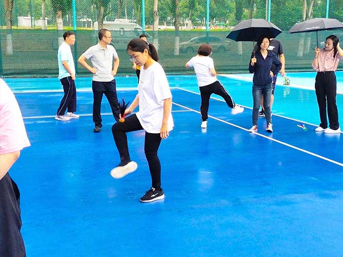 這是為女生們準備的個人賽,同理,男生也可以挑戰。參加者每人一次機會,踢毽子在不間斷、不落地的前提下,個數*多者勝利。并且冠*可以直接去選一個獎品拿走。